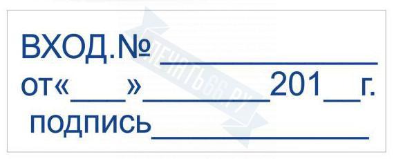 - Штамп ВХОД.№ ОТ____ДАТА __ ПОДПИСЬ___ на автоматической оснастке Trodat 3912 размером 47 х 18мм по цене 989 рублей и еще 84 вида штампов со стандартными словами